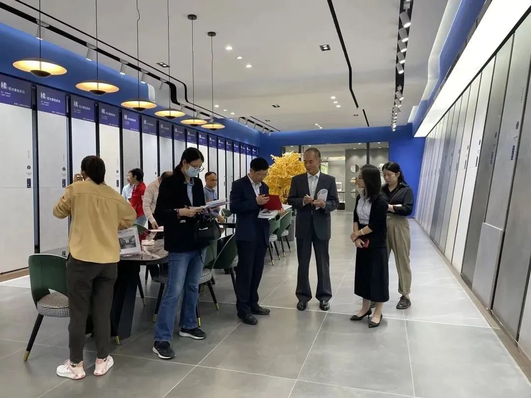 本届新锐榜评审团新锐榜评审委员会主席、中国建筑材料流通协会首席专家黄芯红先生,新锐榜资深评委专家(共参与18届评审)、佛山陶瓷学会执行理事长徐平先生, 佛山陶瓷学会副会长黄惠宁先生,原中国建筑材料集团咸阳陶瓷研究设计院常务副院长李转先生,国家陶瓷及水暖卫浴产品质量监督检验中心副主任、教授级高工区卓琨女士,陶城报社总编辑戴科丽一行参观考察,品鉴“愫”低光素色系列新品迭代创新的实力。